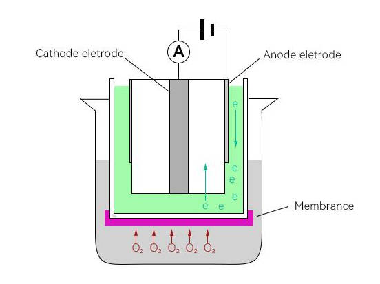 The oxygen is separated by electrolysis as it passes through the film to the surface of the cathode during use, and the released electrons form a current in the electrolyte.Because the content of dissolved oxygen through the membrane is proportional to the dissolved oxygen content in the water, the intensity of the current formed in the electrolyte is different for different dissolved oxygen content, and the current intensity can be monitored by electrodes.The current intensity monitored by the electrodes can be converted to a specific oxygen concentration according to Faraday's law, and the final value is obtained by compensating for temperature and air pressure.